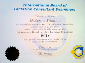 С удовольствием сообщаем, что специалист GMS Clinic по грудному вскармливанию Екатерина Локшина получила международный сертификат Консультанта IBCLC (International Board Certified Lactation Consultant).